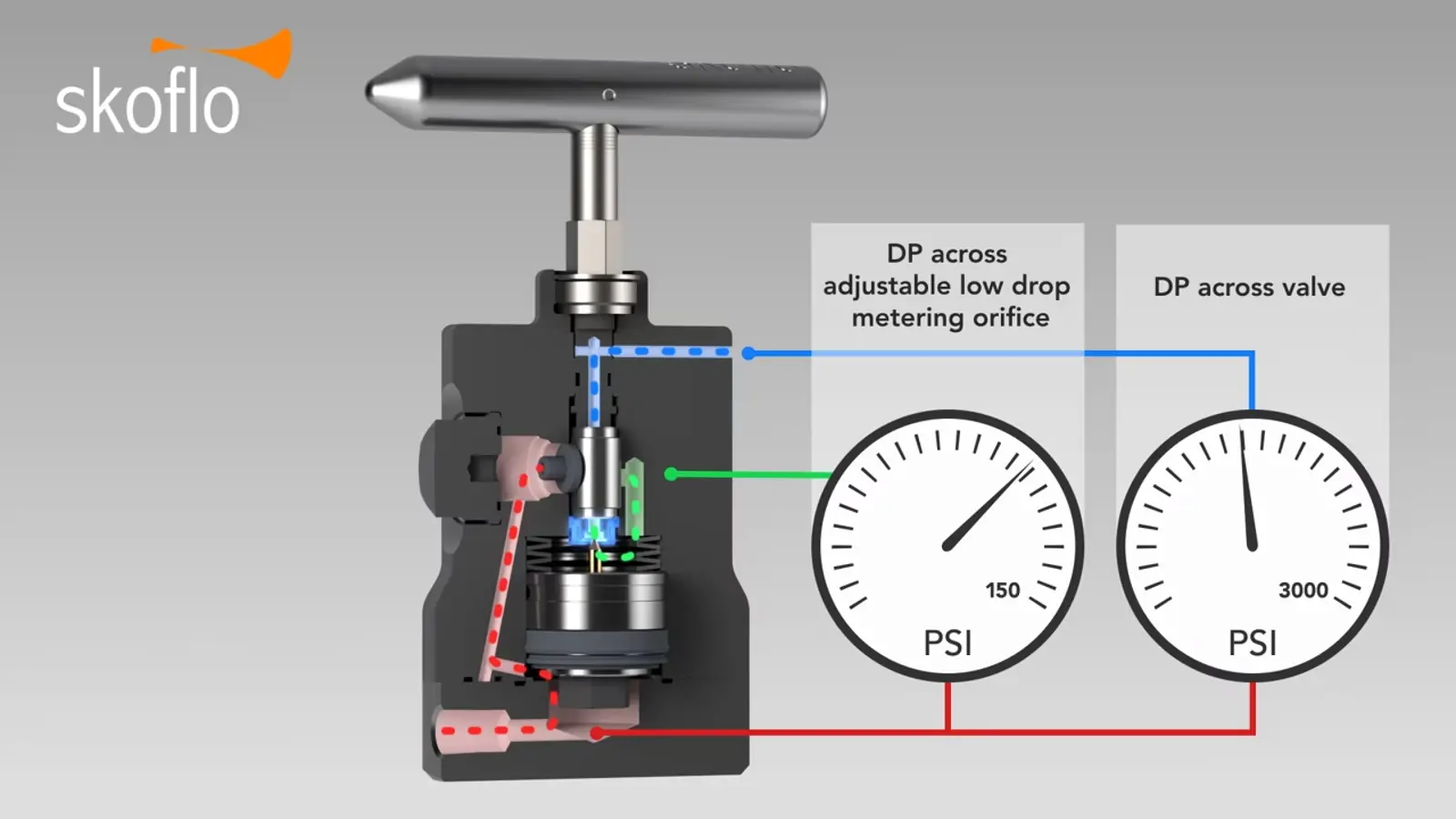 SkoFlo chemical injection metering valves (CIMV) are pressure-independent, maintaining their set flow rates despite fluctuations in upstream or downstream pressure.